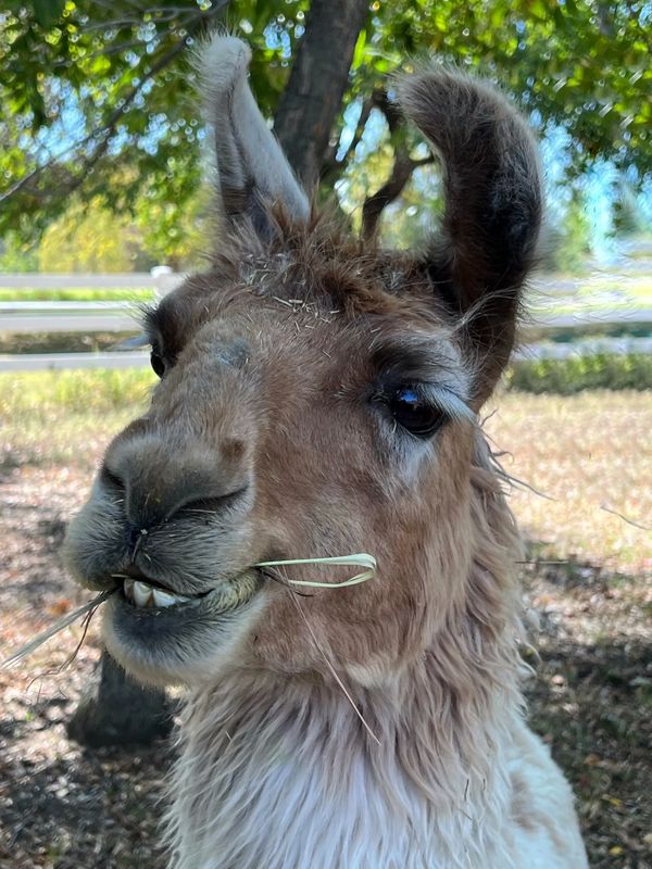 Heyday is the grumpy old man, “get off my lawn” llama. He wants to do what he wants to do when he wants to do it. Shearing is not on his list of things he wants to do and he throws a ring-tailed fit every year when it comes time for his haircut. He has a unique look with light blue eyes.